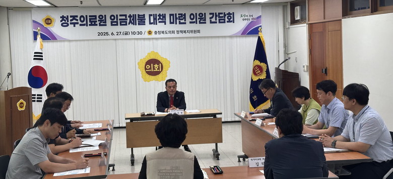 [충북 세계타임즈=이현진 기자] 충북도의회 정책복지위원회는 27일 박지헌 의원(청주4) 주최로 도의회 7층 회의실에서 ‘청주의료원 임금체불 대책 마련 의원 간담회’를 개최했다.
