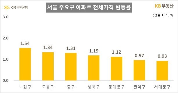 서울 아파트 구별 상위 전셋값 상승률 [KB부동산 제공]