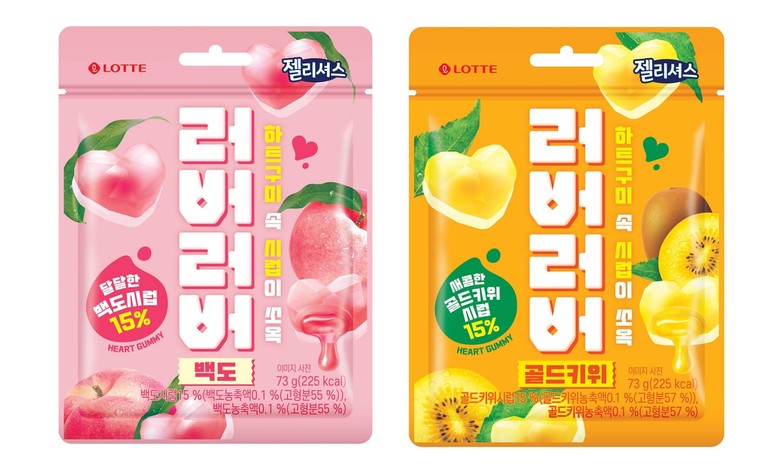 이번에 선보인 젤리셔스 ‘러버러버’는 백도와 골드키위 맛으로 2종이다. 2030 여성의 취향을 반영해 사랑스럽게 느껴지는 단어를 제품명으로 사용해 감성을 자극했고, 제품 모양도 예쁘고 귀여운 보석모양 하트로 만들어 시각적인 즐거움도 더했다. 또 ‘러버러버’는 쫄깃한 젤리와 에어레이션 공법을 사용한 폭신한 젤리의 조화로 말랑하면서도 쫀득한 두 가지 식감을 한번에 즐길 수 있어 재미있다.
