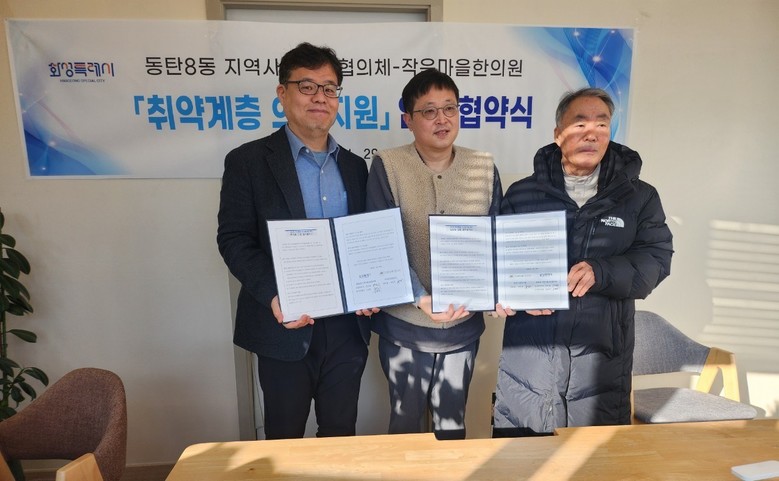 안성종 동탄8동장은 “이번 협약은 민관 협력을 통한 지역사회 의료 나눔의 좋은 사례로 취약계층 주민들의 건강과 삶의 질 향상이 기대된다”며 “앞으로도 지역사회보장협의체와 함께 촘촘한 복지 안전망을 구축해 나가겠다”고 말했다.