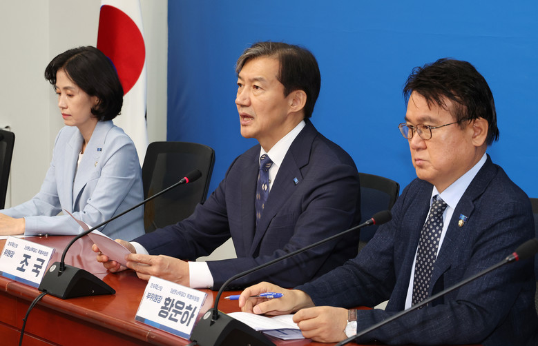 조국혁신당 조국 대표(가운데)가 4일 오전 국회에서 열린 '3년은 너무 길다 특별위원회'(탄핵추진위원회) 회의에서 발언하고 있다. 2024.9.4