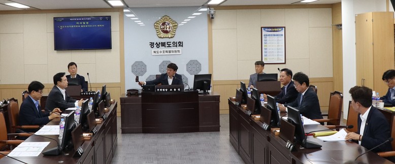 [경북 세계타임즈=한윤석 기자] 경북도의회 독도수호특별위원회(위원장 허복)는 제347회 경상북도의회 제1차 정례회 기간 중인 6월 10일(월) 제7차 독도수호특별위원회를 개최하여 제12대 전반기 2년 동안 특별위원회의 활동을 담은 활동결과보고서를 채택했다.