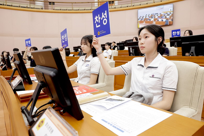 이날 청소년 의회교실은 송촌고등학교 학생 16명과 지도교사가 참여했으며, 학생들은 일일 시의원이 되어 안건 상정 및 자유발언 등을 직접 체험해 보는 시간을 가졌다. 특히 ‘과제수행 AI앱 사용범위 기준 건의안’을 직접 제안하고, 이에 대한 열띤 토론과 찬반 투표를 진행했다. 학생들은 AI 기술을 창의적 과제수행 도구로 어떻게 활용할 수 있을지, 그리고 사용 시 주의해야 할 점은 무엇인지에 대해 깊이 고민하고 의견을 나눴다.