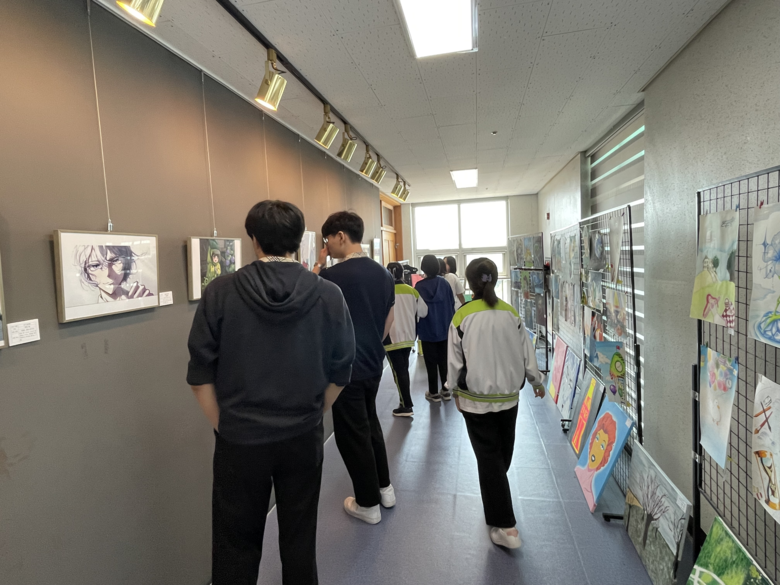 한서현(신천고, 2학년)은“교내에서 지역 미술 전문 작가들의 다양한 작품이 전시되면서 미술에 관심 있는 학생들은 더 관심을 가지고 없던 학생들도 새롭게 관심이 생긴 것 같아요. 솔빛관은 해바라기 꽃과 자작나무가 그려진 그림으로 자연이 피어있었고, 마중길 갤러리에는 작가님들의 개성이 돋보이는 작품이 가득 있어 다양한 그림을 볼 수 있었습니다. 하랑실 갤러리에는 미술 체험 특강 때 그렸던 작품과 함께 신천고 학생들의 미술작품이 전시되어 더욱 뿌듯했고 재미있는 경험이었습니다. 미술을 진로로 하는 친구들이 멀리 가지 않아도 학교에서 충분히 체험을 할 수 있다는 점에서 많은 도움이 되었습니다. 학교에 작품을 전시해주신 작가님들과 이런 기회를 만들어준 학교에 감사합니다.”라고 소감을 밝혔다.