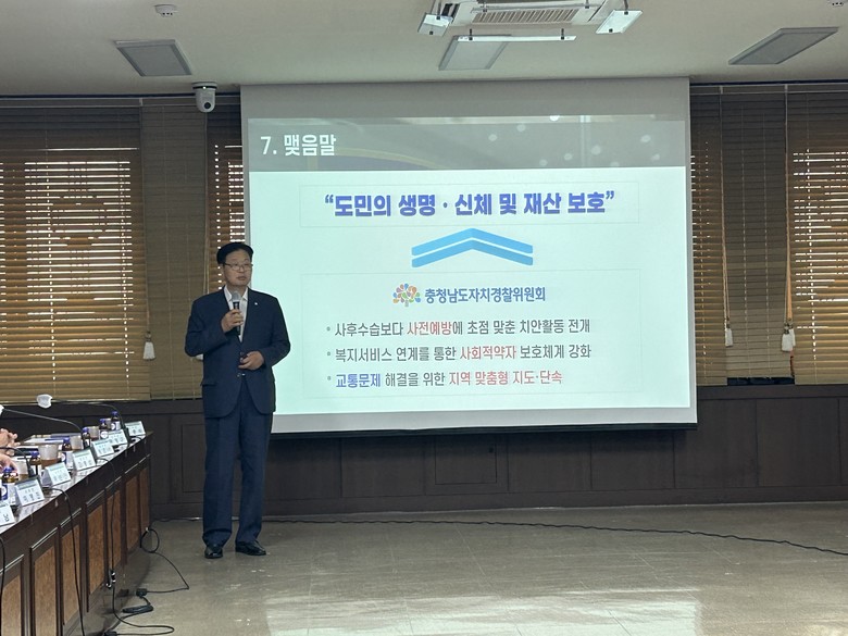 홍성군 이장연합회 회원 22명을 대상으로 한 이번 교육에선 김영배 도 자치경찰위원회 사무국장이 강사로 나서 자치경찰 제도의 역할과 기능을 제대로 이해할 수 있도록 자치경찰제도 도입 배경과 성과, 주민 참여 방안, 범죄 예방, 여성·청소년, 교통 등 자치경찰 주요 사무를 설명했다.