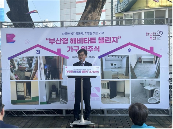 ◈ 시, 기부 릴레이가 계속될 수 있도록 뜻있는 지역 사회공헌 기업과 단체·개인을 발굴해 안녕한 부산을 조성하고 기업의 역할 모델을 제시할 계획 [세계타임즈=부산 이용우 기자] 부산시(시장 박형준)는 어제(26일) 남구 우암동에서 지역사회와 함께 취약노인 주거환경을 개선하는 '부산형 해비타트 챌린지 사업' 가구 입주식을 개최했다고 밝혔다.