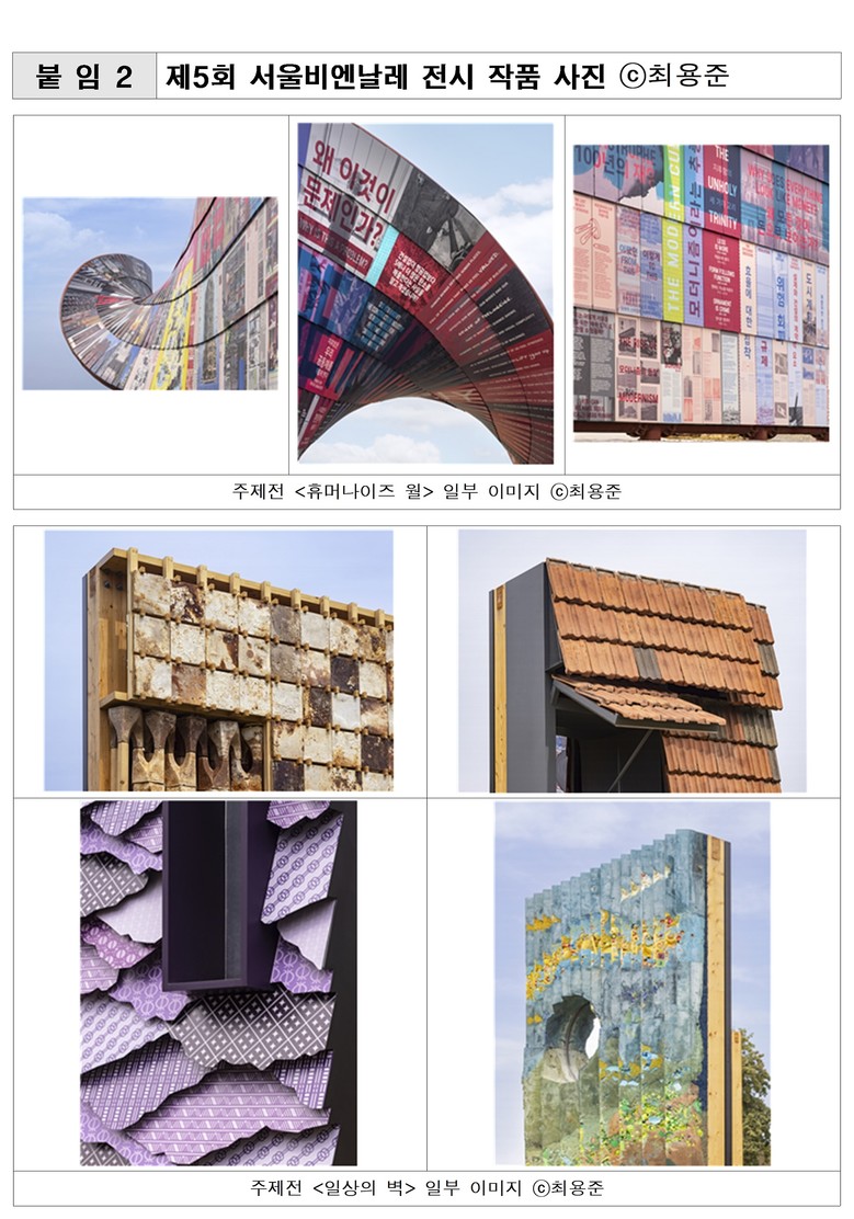 앞서 지난 6월 토마스 헤더윅 총감독은 올해 ‘서울비엔날레’는 단순 미학적 관점을 넘어 일상에서 마주하는 건축물 외관을 통해 도시를 즐겁고 매력적으로 만드는 방법을 탐구하는 것이 주요 기획 방향이라고 마스터플랜에서 밝힌 바 있다.