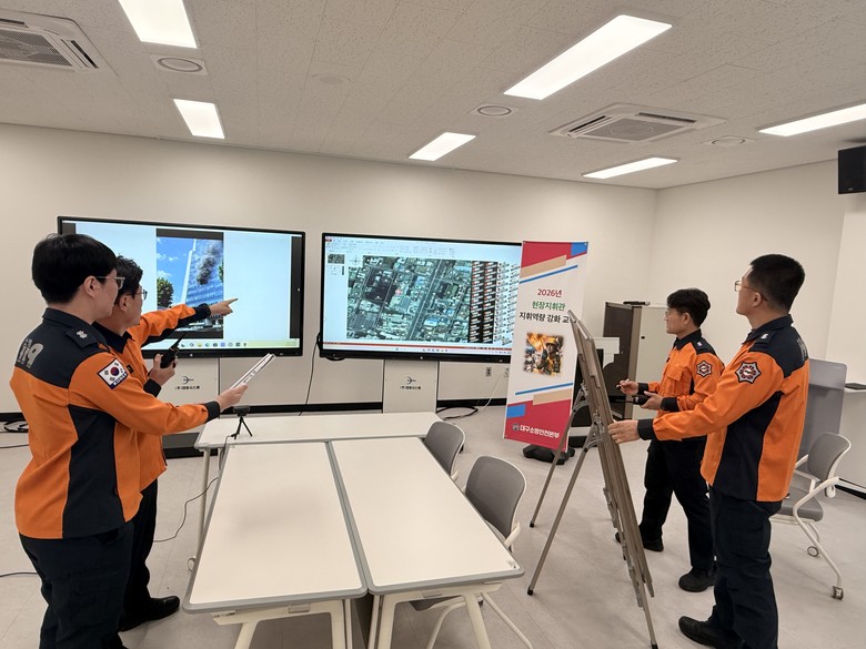 ▸ 실시간 자원관리·지휘작전 전개 상황관리 중심의 디지털 기반 훈련 [세계타임즈=대구 한윤석 기자] 대구소방안전본부는 1월 8일(목) 오전 10시, 대구 동구 각산동 소방교육훈련센터에서 ‘2026년 상반기 현장지휘관 지휘역량 강화 교육훈련’을 실시했다.
