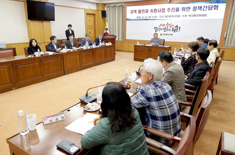 [대전 세계타임즈=이장성 기자] 대전시의회 복지환경위원회는 이한영 의원(국민의힘, 서구6) 주재로 23일 의회 소통실에서 ‘지역 발전과 숙원사업 추진을 위한 정책간담회’를 개최했다.