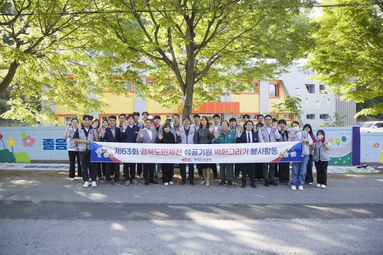한국도로공사는 4월 29일(수) 제63회 경북도민체육대회(5.9∼5.13) 유도 경기가 열리는 김천서부초등학교에서 벽화 그리기 활동을 진행했다.