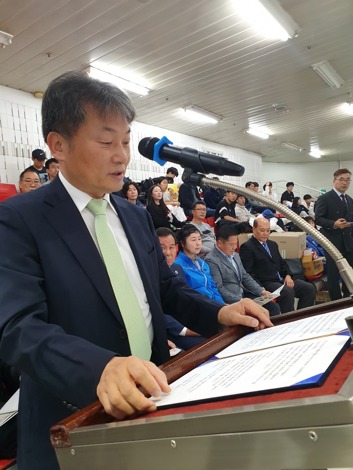 이날 안양시유도회 김재석 회장은 대회사에서 “익어가는 가을의 정취를 마음껏 누릴 수 있는 이때 『2019 안양시유도회장기 경기도유도대회』에 참가하신 선수와 유도관계자 여러분들과 존경하는 내외 귀빈 여러분들께 환영의 인사와 더불어 진심으로 감사의 말씀을 드린다. 또한 목표를 달성하기 위해 각고의 노력과 인내를 감내하고 있는 선수 여러분들의 기량은 많은 훈련과 경기를 통해 실력이 향상 된다. 뿐만 아니라 이번 대회가 선수 여러분들의 경기력 향상에 도움이 되어 더 큰 선수가 되는 밑거름이 되기를 기대한다. 이는 굳은 각오로 시련을 극복하고 자신과의 싸움에서 이길 수 있도록 열심히 노력하시길 바라며, 이번 대회는 그동안 갈고 닦은 기량을 유감없이 발휘하여 후회 없는 경기가 되시기 바란다.