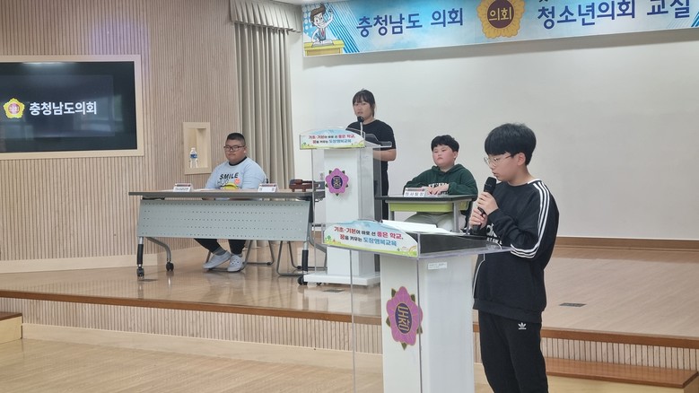 이날 천안 도장초 학생들은 의장 선거에 출마한 학생들의 정견 발표를 들은 후 투표를 통해 의장을 선출하고, 도의원 역할을 경험하며 주민대표의 중요성을 체험했다.