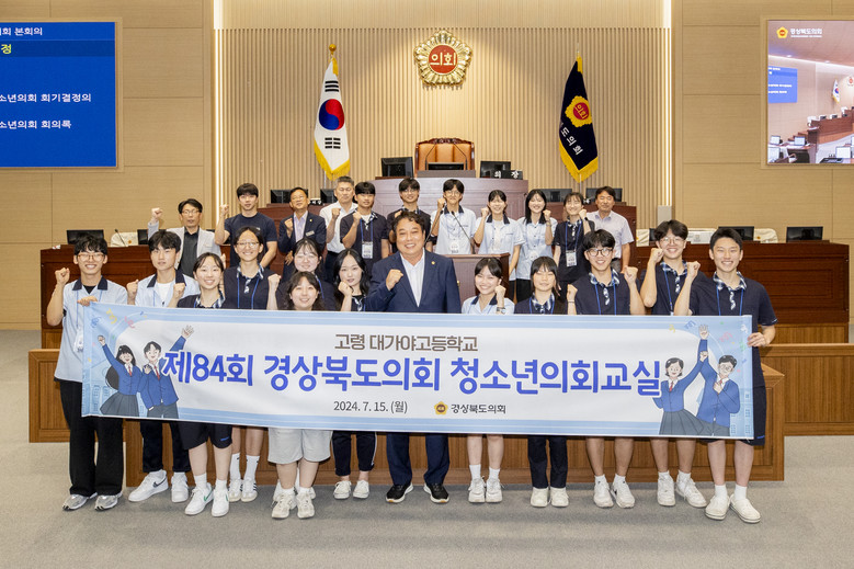[경북 세계타임즈=한윤석 기자] 경상북도의회(의장 박성만)는 7월 15일(월) 본회의장에서 고령 대가야고등학교 학생 20여명이 참여한 가운데 제84회 경상북도의회 청소년의회교실을 개최했다.