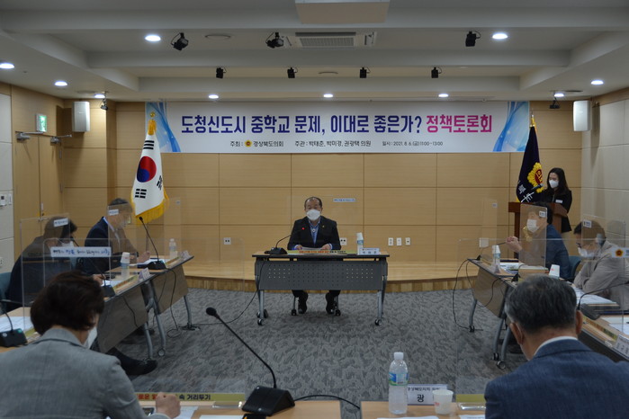 [경북=세계타임즈 한성국 기자] 경북도의회 박태춘 의원은 지난 6일 경북도의회 세미나실에서 ‘도청신도시 중학교 문제, 이대로 좋은가?’ 라는 주제로 도청신도시 중학교 문제 해결방안 모색을 위한 정책토론회를 개최했다.
