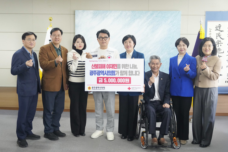 [광주 세계타임즈=손권일 기자] 광주광역시의회(의장 신수정)는 3월 28일 대형 산불 피해의 신속한 복구와 지역 주민들을 돕기 위한 성금 500만원을 대한적십자사에 기탁했다고 밝혔다.