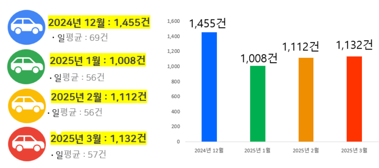▸전년 대비 총 운행차량 3만여 대 감소, 적발 대수 3천여 대 감소