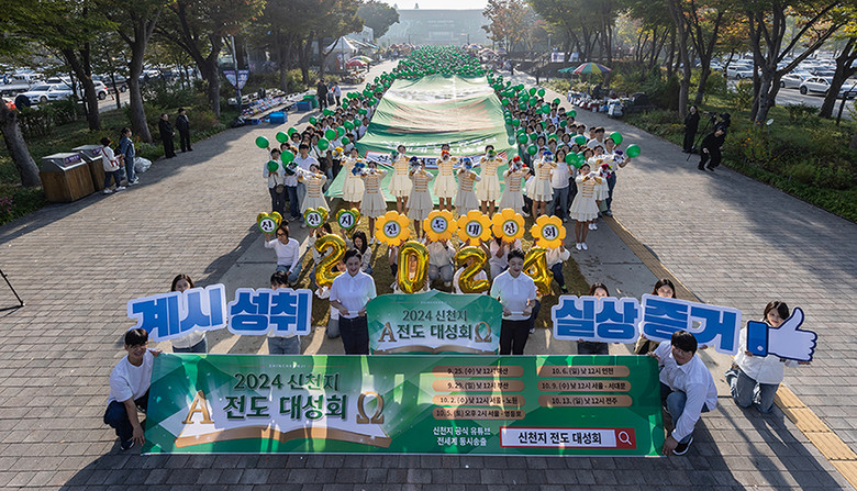 | ▲12일 서울대공원에서 신천지 과천‧왕십리교회 성도 2000여 명이 ‘신천지 전도 대성회’ 홍보 퍼포먼스를 펼치고 있다. [사진 제공 = 신천지 과천교회] |