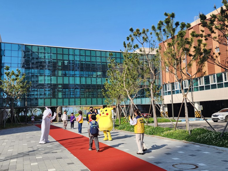 ◦ 인형 탈을 쓰고 하는 아침 인사로 특별한 아침을 열고 학생, 학부모, 교사 간 상호 존중 문화 형성