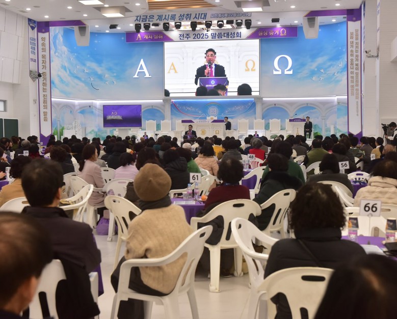 [전주시=세계타임즈 = 이영임 기자] 15일 신천지예수교 도마지파 전주교회에서 '계시 성취 실상 증거'를 주제로 요한계시록 강연에 앞서 신천지교회의 말씀을 들은 목회자 간증을 참석한 목회자와 신앙인들이 집중해서 듣고 있다.