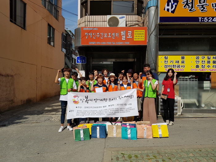 장애인주간보호센터 헬로(원장 이민훈)의 주관으로 진행된 삼계탕 배달봉사에 회원들이 4팀으로 나누어서 봉사를 하였다.
