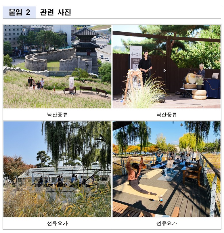 보라매링(9. 27.~28.)/낙산풍류(10. 11.~12., 10. 18.~19.)/선유요가(10. 18.~19.)
