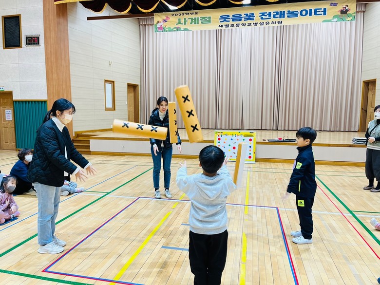 [광주 세계타임즈=손권일 기자] 새별초등학교병설유치원이 지난달 28일 강당에서 가족과 함께하는 ‘사계절 웃음꽃 전래놀이터’ 행사를 진행했다.