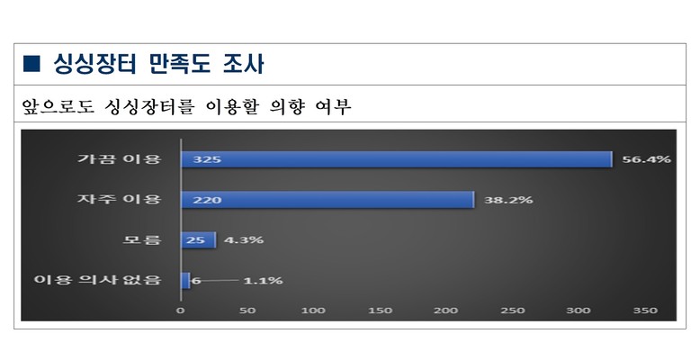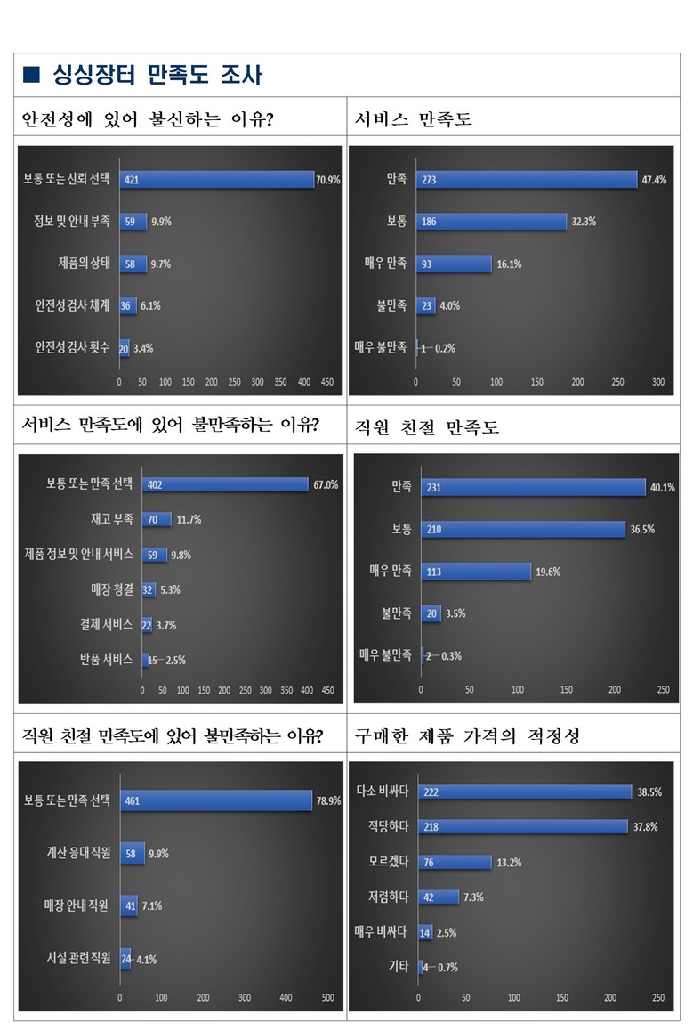 ※ 붙임. 세종시티앱 싱싱장터 만족도 설문조사 8.5~8.11(7일), 576명 시민 참여, 가격 다소 비싸다(38.5%), 매우 비싸다(2.5%) 응답 등