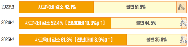 서울런 이용 가구 중 ‘사교육비가 줄었다’고 응답한 비율은 ’25년 61.3%로 전년(52.4%) 대비 8.9%p 상승했으며, 월평균 절감액도 ’23년 25.6만 원→ ’25년 34만 원으로 늘어 가계 사교육비 절감 효과가 확인됐다.