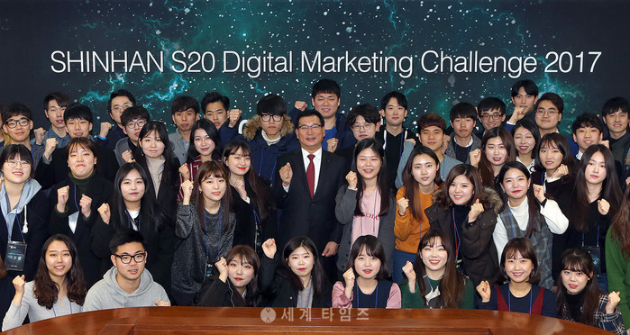 [세계타임즈 김장수 기자] 신한은행은 지난 17일 20대 고객들이 직접 디지털 채널 운영 방안을 기획하고 마케팅 아이디어를 제안하는 참여형 공모전 ‘S20 디지털 마케팅 챌린지 2017’ 시상식을 진행했다고 밝혔다.