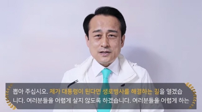 이어 그는 “대한민국을 살리고 일으켜 세우겠다고 생각한다면 저에게 기회를 달라”며 “국민들은 지금 두 갈래 나누어지고 찢어지고 싸우고 다투고 있는데 더불어 민주당과 국민의 힘 대선 후보들이 서로 자기가 대통령이 되겠다고 권력 다툼을 하고 있는 실정이니, 국민들은 삶의 의욕이 떨어져 실망하고 죽어가고 있다”고 말했다.