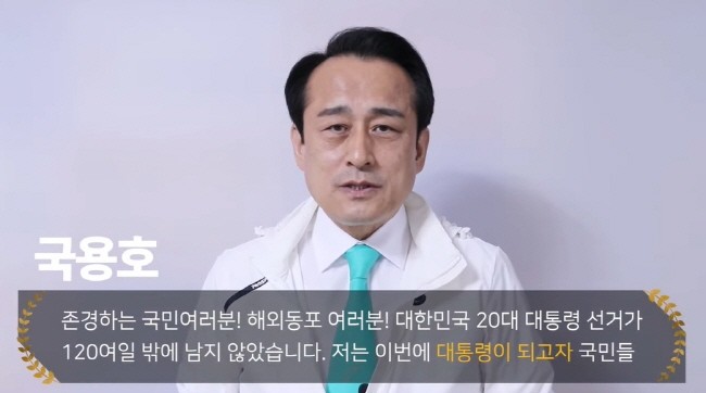 이날 국용호 사무총장은 “더불어 민주당에서 후보가 선출됐고, 국민의 힘에서는 후보가 선출되고, 정의당, 국민의 당에서 대통령 후보들이 나왔지만 정작 국민들은 뽑을 사람이 없다고 하소연하고 있다”며 “이런 대통령 선거는 처음 있는 일이다. 그래서 저 국용호가 당당하게 나섰다”고 호소했다.