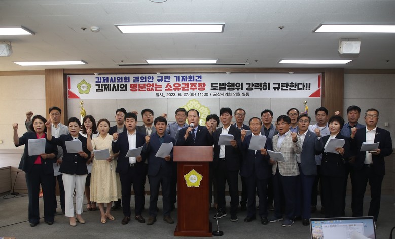 또한 김제시의회가 지난 22일 새만금 동서도로, 신항만 행정구역을 김제시 관할로 해야한다고 소유권을 강조하며 전라북도가 제시한 새만금특별지방자치단체 추진에 대해 규탄·결의한 것에 대해 군산시의회는 김제시의회가 전라북도를 분열시키고 동서2축 도로와 군산새만금신항만을 빼앗아가려는 명백한 획책이며 도발행위(소유권 주장)라며 이에 군산새만금신항과 동서2축 도로 구간을 ‘특별위기대응지역’으로 선언하고 모든 군산시민이 결집하여 총력 대응에 나설 것을 천명하는 기자회견을 하는 등 적극적으로 군산시의회는 새만금특별지방자치단체 추진을 누구보다 바라고 있으며 군산새만금신항 관할권 사수와 나아가 군산의 미래, 새만금의 미래, 전북의 미래를 위한 노력을 아끼지 않고 있다.