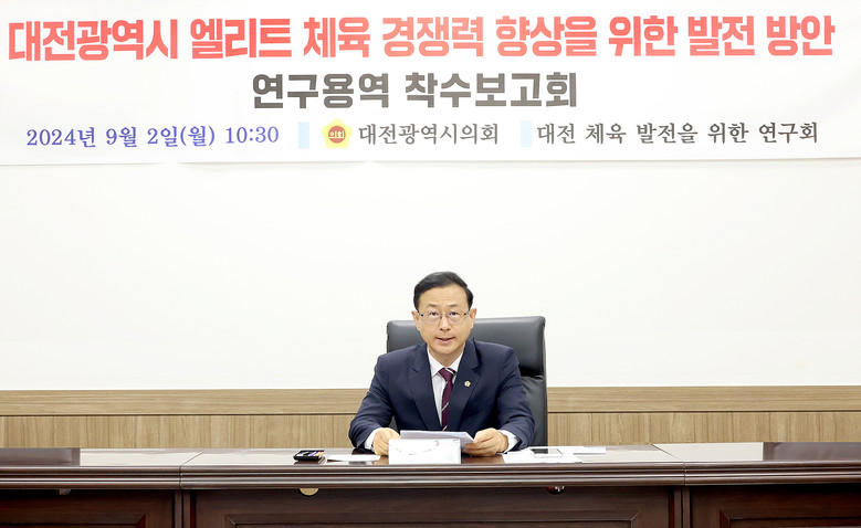 [대전 세계타임즈=이채봉 기자] 대전시의회 「대전 체육 발전을 위한 연구회」(회장 민경배 의원)는 2일 대전시의회 공감실에서 ‘대전광역시 엘리트 체육 경쟁력 향상을 위한 발전 방안’ 연구용역 착수보고회를 열었다고 밝혔다.