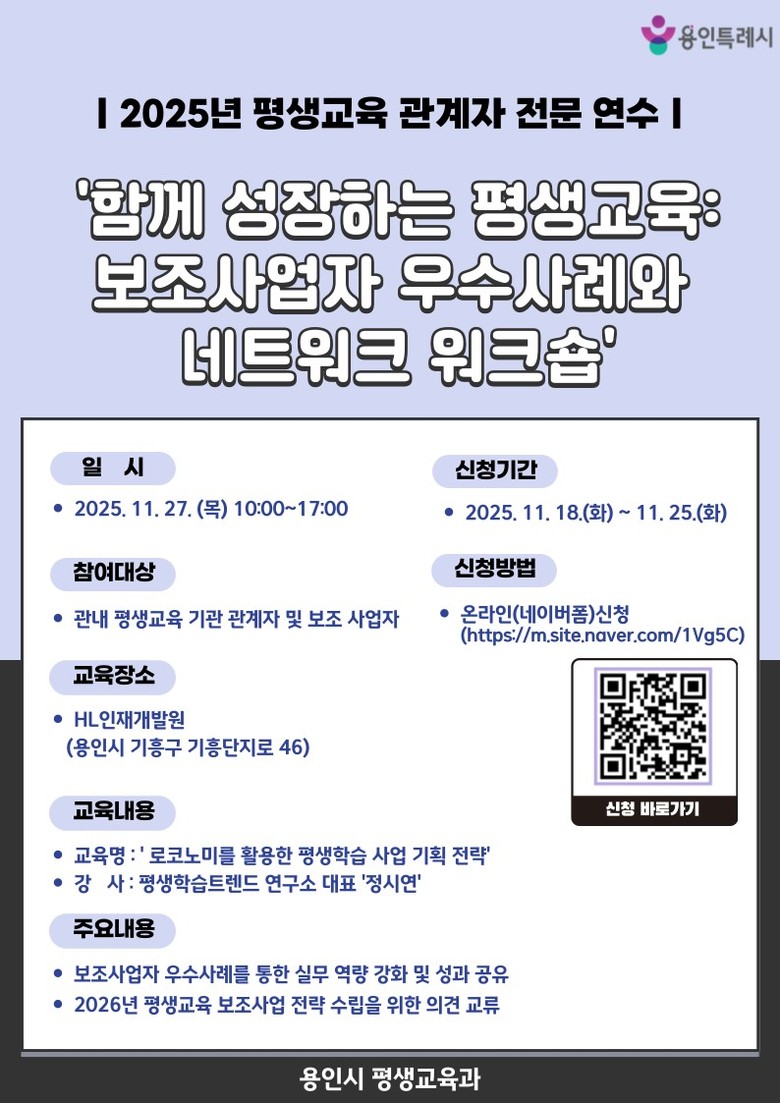 시는 강의와 함께 평생교육 관계자들과 2026년 평생교육 보조사업 운영 방향과 전략에 대해 논의할 예정이다.