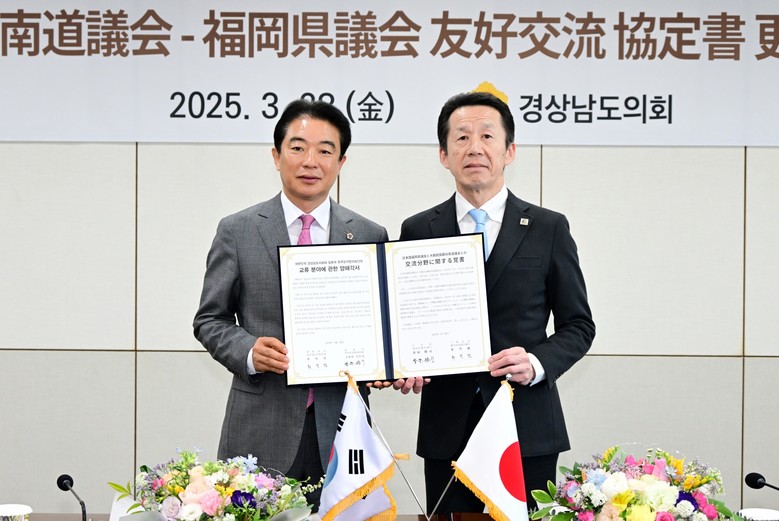 경상남도의회와 후쿠오카현의회는 지난 2012년 5월 10일 우호교류 협정서를 체결한 이후, 인적교류와 문화교류 등 분야에서 지속적인 교류를 이어오고 우의 증진을 도모해 왔다. 이번 우호교류 협정 갱신을 통해 양 기관은 의회 차원의 지속적인 협력의 토대를 마련하였고, 특히 보건, 환경, 수의학적 협력을 포함하는 원 헬스 분야의 세부협정 양해각서를 체결하는 뜻깊은 성과도 있었다.