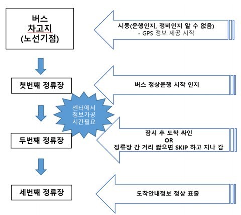 버스정보시스템은 GPS 기반으로 버스 도착 예정 시간을 안내하고 있으나, 수정구 수진동 삼부아파트, 삼정아파트 인근 주요 정류장에서는 기점 및 두 번째 정류장 구간에서 도착정보가 제대로 제공되지 않아 버스를 기다리는 주민들에게 제대로 정보를 전달하지 못하는 문제가 발생되고 있다.