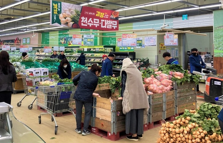 [세계타임즈 = 이현진 기자] 김장철 막바지를 향하는 11월 하순 김장비용은 지난주에 이어 전년보다 낮은 수준에서 안정세가 지속되는 것으로 나타났다.