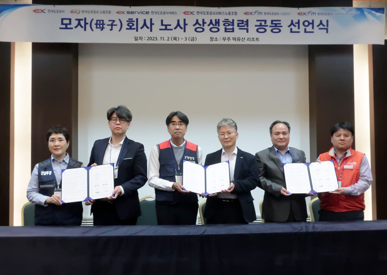 한국도로공사 이지웅 노조위원장은 공동선언문을 발표하는 자리에서 “공사의 모.자회사 노사관계가 공공기관의 모범적인 상생협력 모델이 될 수 있도록 최선을 다해 뒷받침 하겠다”는 의지를 전했으며,