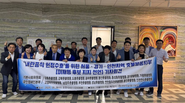 박근혜 퇴진 촛불집회를 계기로 결성된 시민 자생 단체인 ‘서울·경기·인천 15개 지부 촛불행동’이 연합으로 기호 1번 이재명 대통령 후보에 대한 공식 지지를 선언했다.