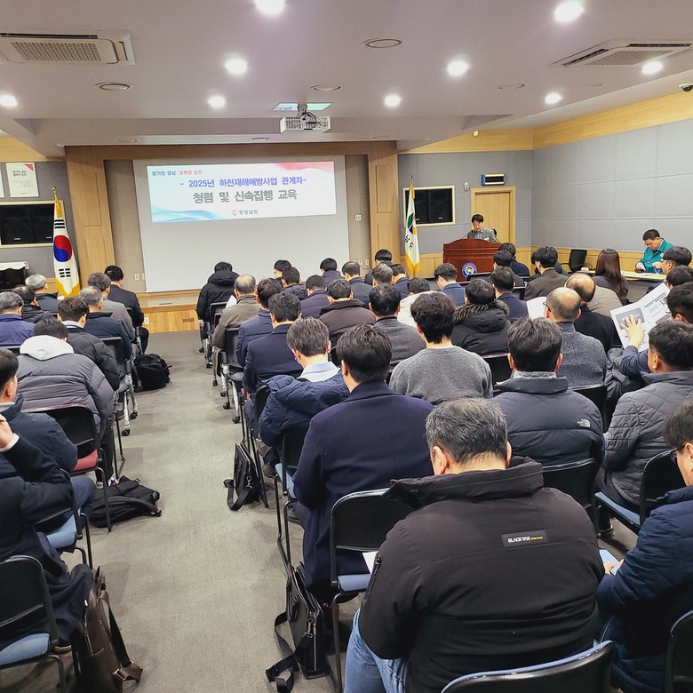 이어 서은석 경상남도 수자원과장이 민생경제에 활력 제고를 위한 2025년 상반기 지방재정 신속집행 추진 전달교육을 했다.