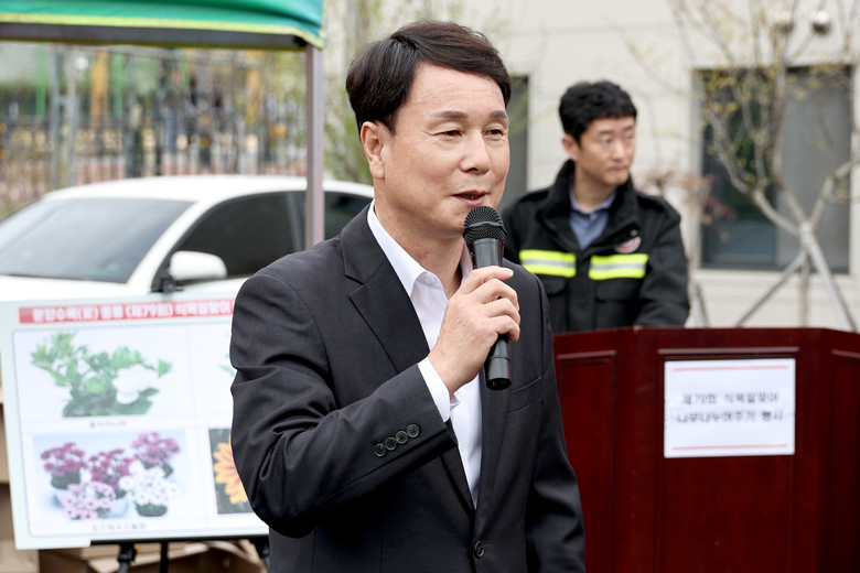 [대전 세계타임즈=이채봉 기자] 대전시의회 이상래 의장은 4일 동구 성남동 다목적체육관에서 열린‘동구 제79회 식목일 맞이 나무 나누어주기 행사’에 참석해 박희조 동구청장과 인사를 나누고, 관계자들을 격려했다.