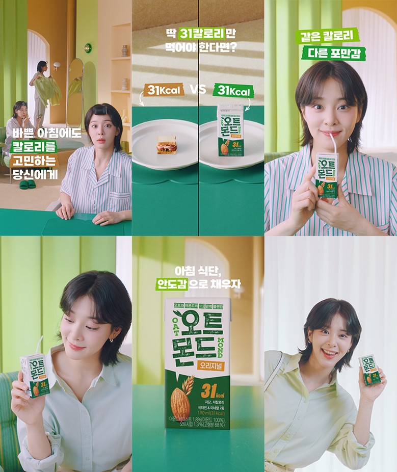 광고는 설인아가 포만감이 필요한 순간에 “바쁜 아침에도 칼로리를 고민하는 당신에게 딱 31 칼로리만 먹어야 한다면?”이라고 질문한다. 31kcal 샌드위치 한 입, 35kcal 초코 케이크 한 입, 28kcal 아몬드 세 알과 오트몬드 오리지널, 초코, 언스위트 한 팩 사이에서 고민하다가 같은 칼로리지만 다른 포만감을 가진 오트몬드를 선택한다.