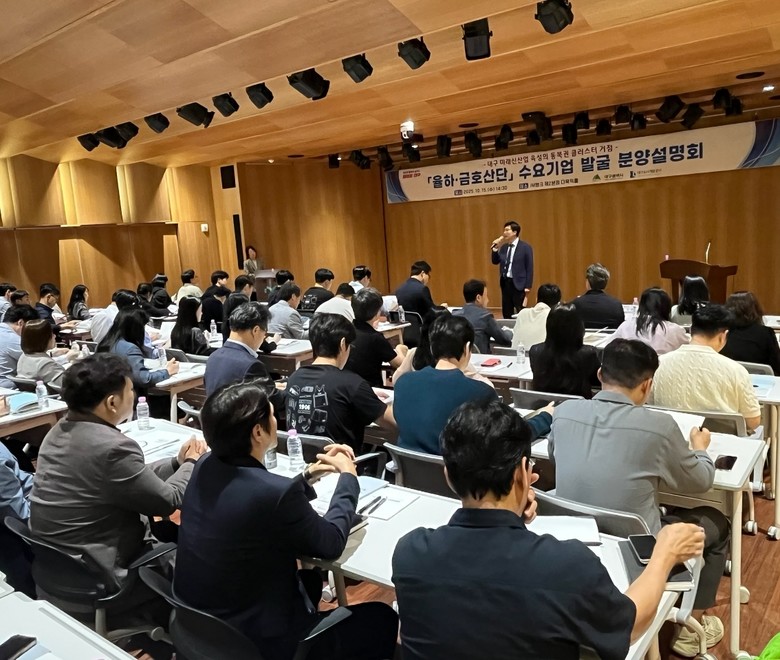 ▸ 도심 개발 마지막 산단… 대구 동북권 미래산업의 전진기지로 육성 [세계타임즈=대구 한윤석 기자] 대구광역시는 대구도시개발공사와 함께 10월 15일(수) 오후, iM뱅크 제2본점에서 ‘율하도시첨단산업단지’와 ‘금호워터폴리스’의 강점과 투자 인센티브를 알리는 ‘수요기업 발굴 분양설명회’를 개최했다.