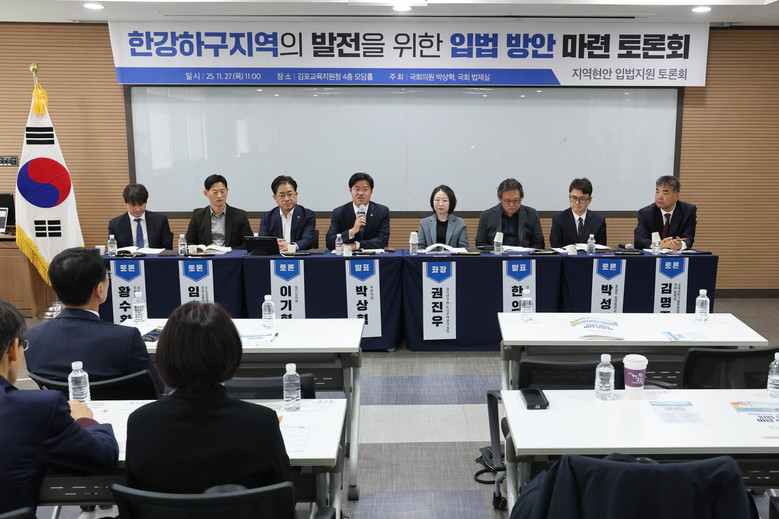 직접 주제발표에 나선 박상혁 의원은 “한강하구 지역은 시암리 습지, 김포한강야생조류생태공원 등 생태계 다양성이 잘 보존되어 왔고, 애기봉 평화생태공원, 전류리 포구, 한강을 따라 뻗은 평화누리자전거길 등 많은 관광자원이 있음에도 불구하고 지리적·군사적 특성으로 각종 규제를 중첩 적용받아 발전이 더뎌왔다”며, “한강하구지역의 발전을 위해 이제는 중앙정부의 적극적 역할이 반드시 필요하기에, 국가적 차원의 지원 근거를 만들기 위해 「한강하구법」입안을 준비하게 되었다”고 입법의 필요성을 설명하였다.