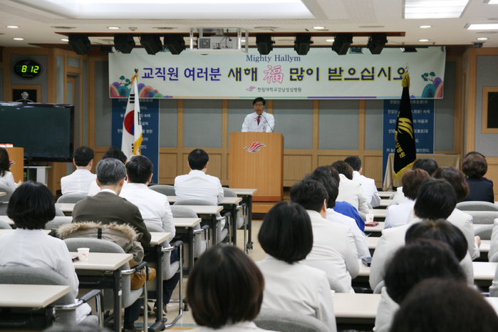 이영구 병원장은 “우리 병원은 지난해 9월 신관 개관과 더불어 괄목할만한 경영 성장을 이뤘다. 교직원 모두가 한마음 한뜻으로 노력해준 것에 대해 진심으로 감사드린다”이어서 “올해는 우리 병원이 개원 40주년을 맞이해 더욱 특별하다. 지난해 신관 건립을 통해 대림삼거리 일대를 한림메디컬타운으로 조성해 가기 위한 신호탄을 쏘아 올렸고 올해가 한림메디컬타운 구축을 향해 첫발을 내딛는 원년이다. 또 10년 내 국제 로봇원격수술 등 '세계 최고의 국제 특성화병원‘으로 나아가는 원대한 꿈을 펼쳐가는 해이기도 하다. 한림메디컬타운 시대를 향해 힘차게 비상하자”고 덧붙였다.