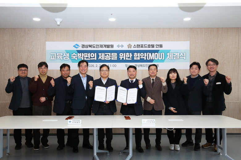 이에 따라 교육생들은 스탠포드호텔 안동의 객실(2인 1실)을 시중 대비 대폭 할인된 가격으로 이용할 수 있게 된다. 지난해 8월 인재개발원이 도청 신도시로 이전함에 따라 교육생 수요가 몰리며 숙소 예약의 번거로움과 비용 문제가 계속 제기돼 왔다는 점에서, 이번 협약은 더욱 큰 의미를 갖는다.
