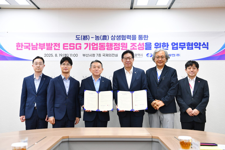 < 업무협약 개요 > ㅇ 일시/장소 : 2025. 8 19.(화) 11:00 / 시청 국제의전실 ㅇ 협약기관 : 부산광역시(시장 박형준), 한국남부발전(주)(사장 김준동) ㅇ 주요내용 - 낙동강 정원 내 ‘사회 가치 경영(ESG) 기업 동행 정원’ 조성 - 정원문화 확산 및 국가정원 지정 추진을 위한 공동사업 발굴·추진 - 사회 가치 경영(ESG) 실천을 통한 지속 가능한 정원 도시 구현 |