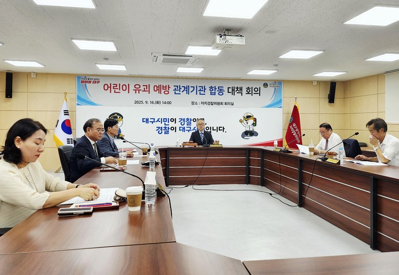 ▸ 아동안전지킴이·시니어-아너 폴리스 추가 배치 및 등하굣길 범죄예방 환경개선 등 촘촘한 사회안전망 구축 [세계타임즈=대구 한윤석 기자] 대구광역시 자치경찰위원회는 9월 16일(화) 대구경찰청, 대구시교육청 등 관계기관과 합동 대책 회의를 열고, 아동 보호와 시민 불안 해소를 위한 사회안전망 구축에 나섰다.