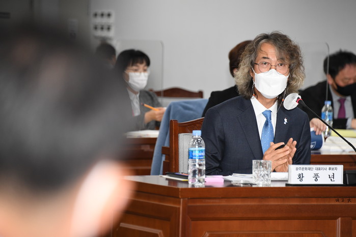 [광주=세계타임즈 손권일 기자] 광주광역시의회 광주문화재단 대표이사 인사청문특별위원회(위원장 황현택)는 7일 오전10시 시의회 5층 예산결산특별위원회의실에서 황풍년 광주문화재단 대표이사 후보자에 대한 인사청문을 실시했다