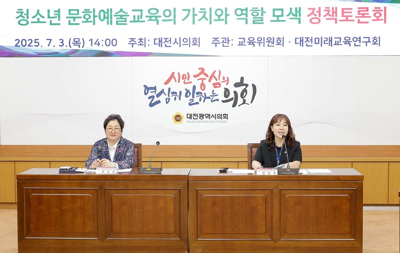 대전시의회 교육위원회와 대전미래교육연구회 공동 주관으로 개최된 이번 토론회는 AI 시대의 미래 인재 양성을 위한 문화예술교육의 중요성을 조명하고, 대전시 청소년이 풍부한 문화예술 환경 속에서 성장할 수 있는 정책적 방안 논의를 위해 마련됐다.